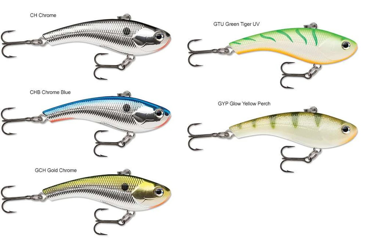 The Rapala Slab Rap Lipless Crankbaits are a versatile series of baits that can be effectively fished in a variety of ways. Fish them on a straight retrieve with quick upward snaps of the rod tip to make the lure search in wide directions and circle back to center after a pause. Aggressively jerking the Slab Rap causes a lift-drop motion on the rise, followed by an evasive side-to-side motion on the fall. The weight forward design of these lures enables a rocking action for triggering feeding instincts in otherwise uninterested predators. The Slab Rap is ideal for targeting multiple species of game fish including bass, pike, walleye, panfish, and more.